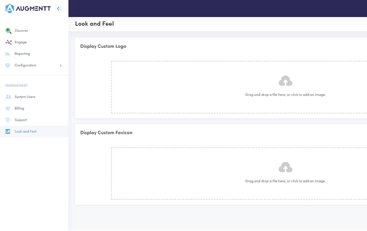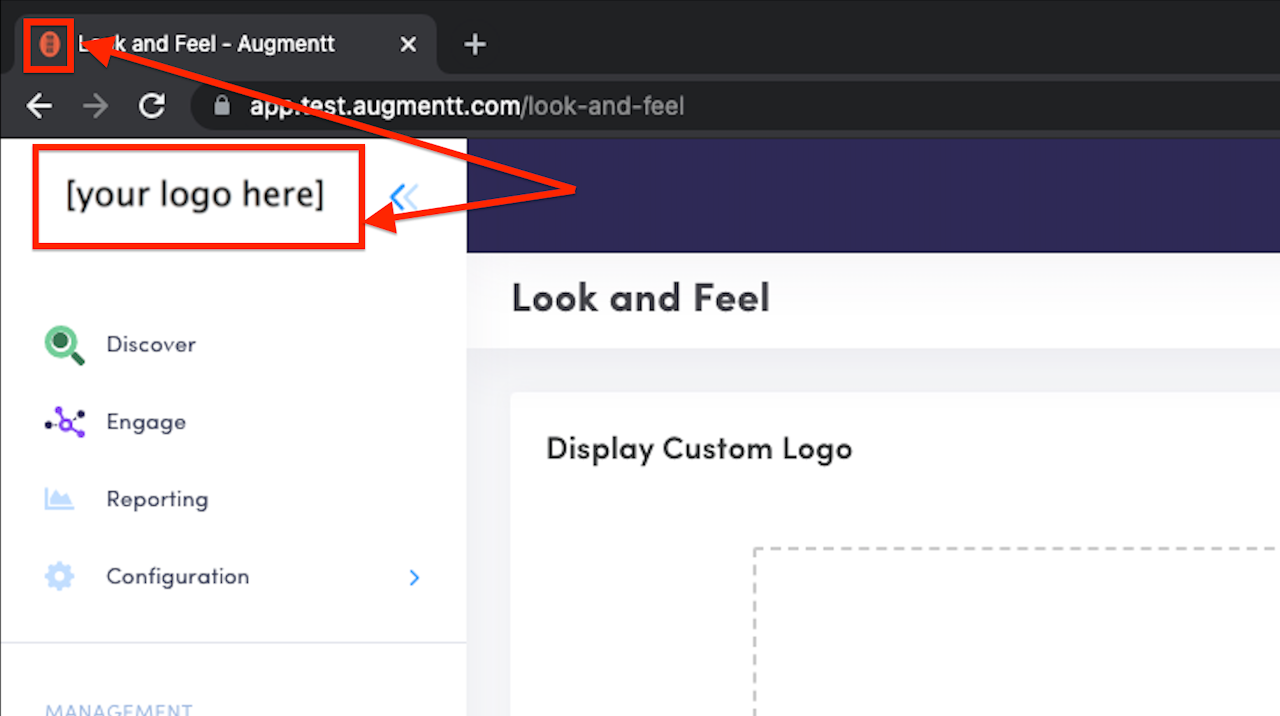 Select your company logo and favicon to replace the Augmentt branding